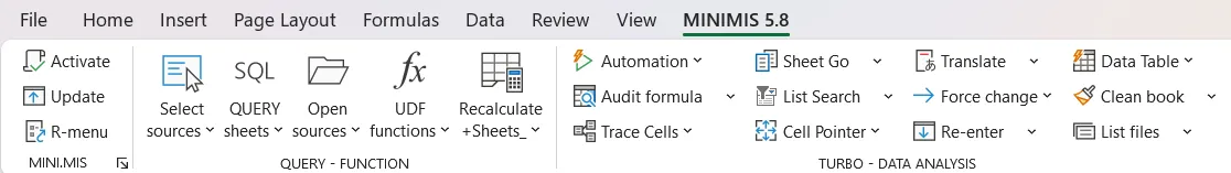 - 💞 MINI.MIS là phần mềm bổ trợ cho Microsoft Excel, bổ sung các chức năng mới mà không thay đổi cấu trúc cơ bản của Excel. Sau khi cài đặt, MINI.MIS xuất hiện dưới dạng một menu-tab trong giao diện ribbon của Excel và menu phải chuột, cho phép người dùng khai thác các tính năng và hàm số mới.