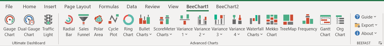 BeeChart là một công cụ thêm vào cho Excel (add-in), giúp bạn thiết lập các biểu đồ phù hợp. Với BeeChart, bạn có thể tạo ra các biểu đồ nâng cao phức tạp (combo chart) và bảng điều khiển ngay lập tức, giúp bạn làm trực quan hóa dữ liệu hiệu quả.