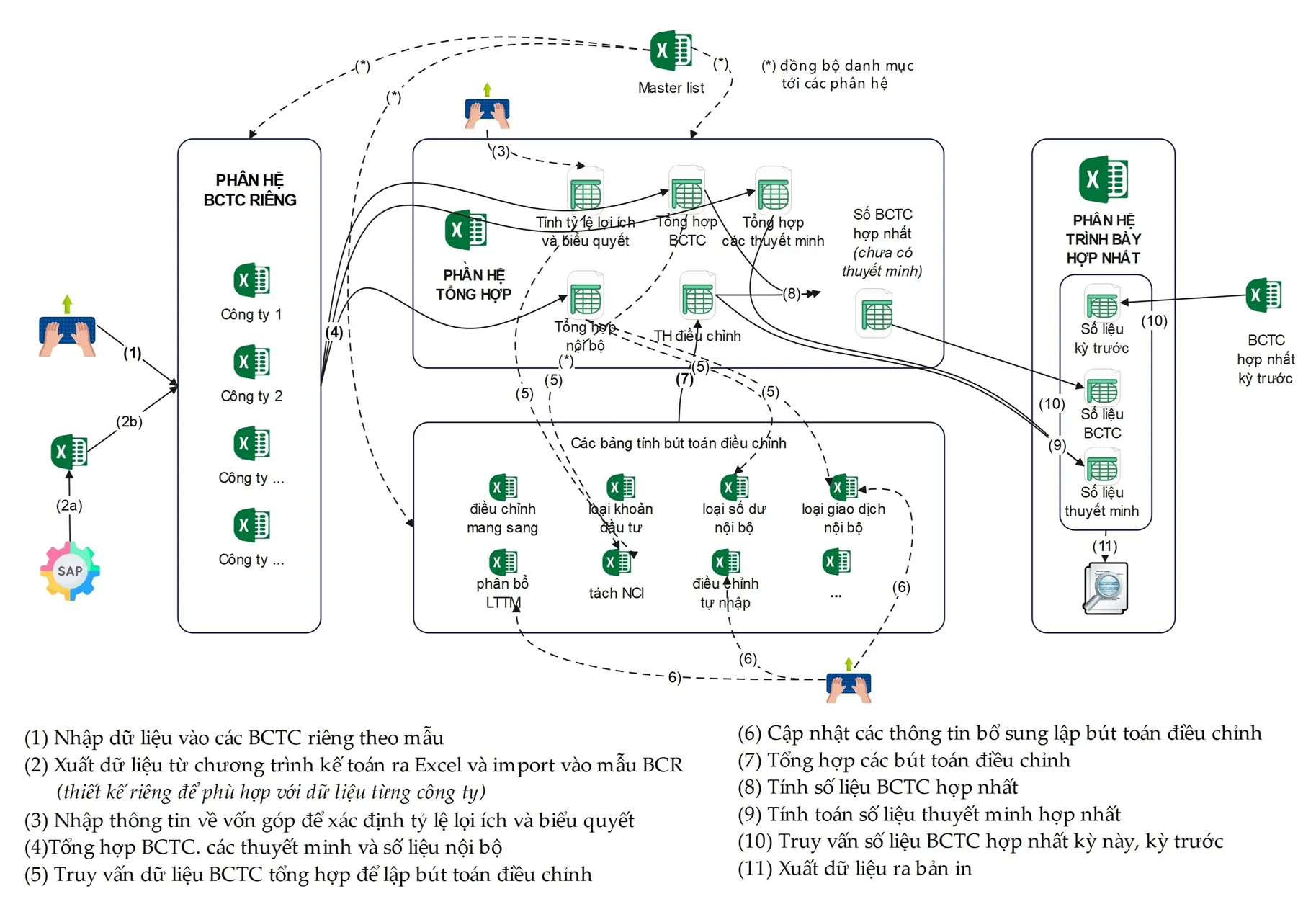 - Hỗ trợ việc tính toán các chỉ tiêu thuyết minh báo cáo tài chính hợp nhất và báo cáo lưu chuyển tiền tệ.