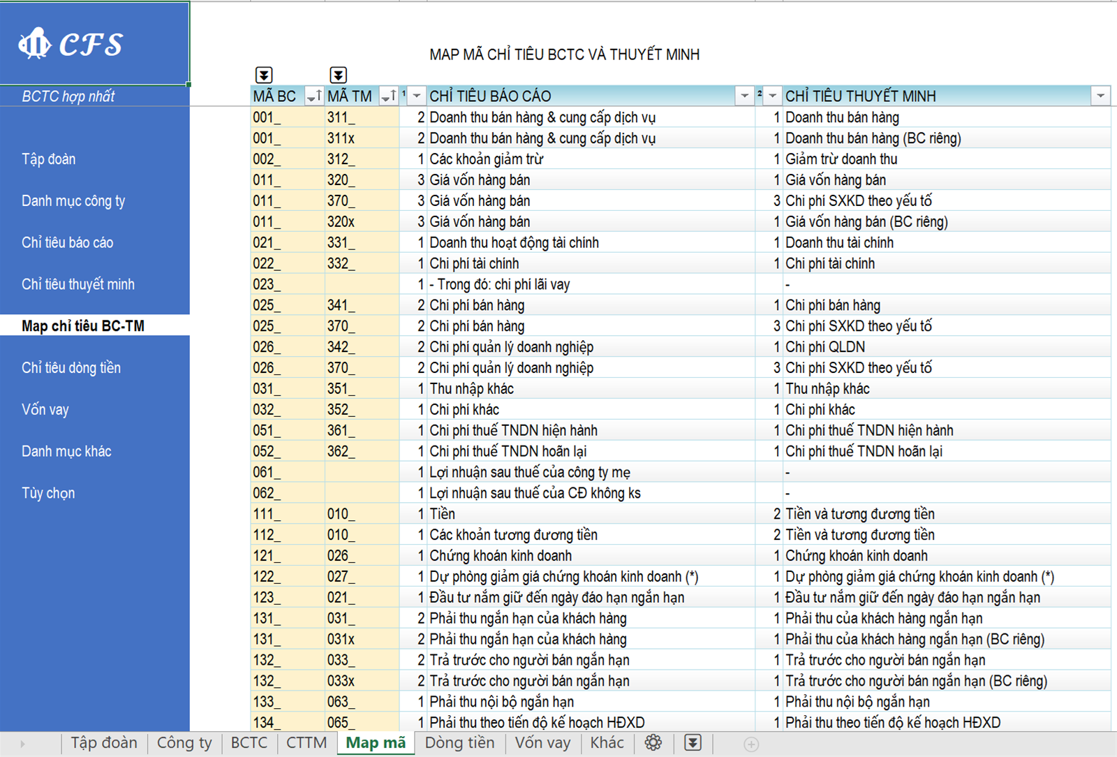 - Ngoài số báo cáo tài chính đã được tính toán và lấy tự động, phần mềm cung cấp cả số liệu thuyết minh của các chỉ tiêu đã được lập thuyết minh từ các báo cáo tài chính riêng và các điều chỉnh hợp nhất.